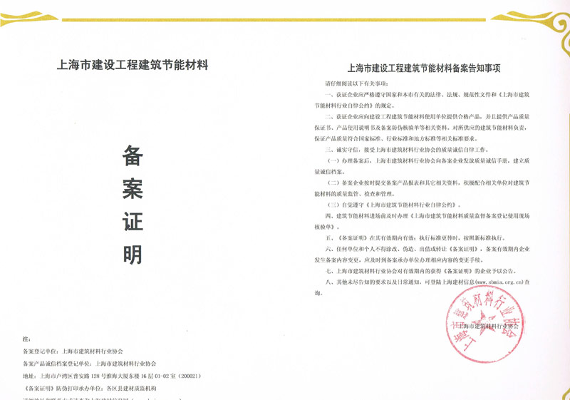 建筑节能材料备案证明