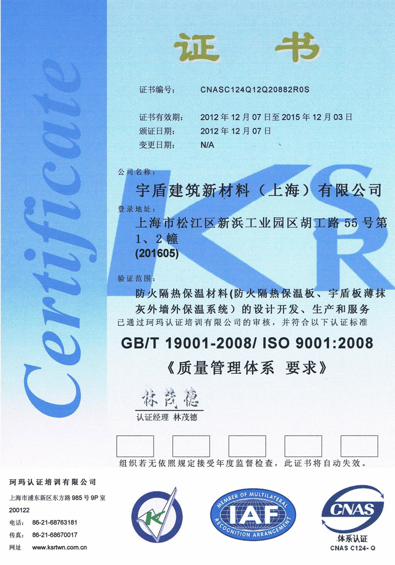 质量认证证书
